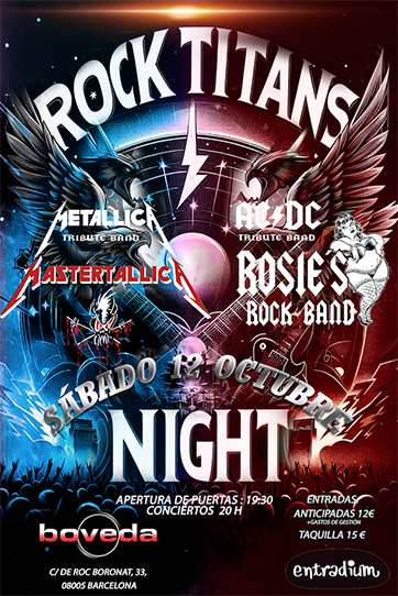 Sábado 12- RockTitans, los mejores temas de Metallica de la mano de Mastertallica y los hits de AC/DC con la actuación de Rosie`s Rock Band